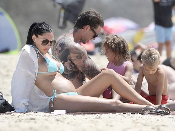 One Hot Mama London Goheen Flaunts Her Blossoming Baby Bump In A Barely There Blue Bikini As She Hits The Beach In The Gold Coast With Tammy Hembrow S Ex Reece Hawkins News