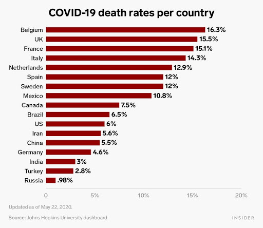 As of 27 April 2021 Yemen has reported the highest case fatality rate CFR at 1949 while Singapore has reported the lowest at 005.